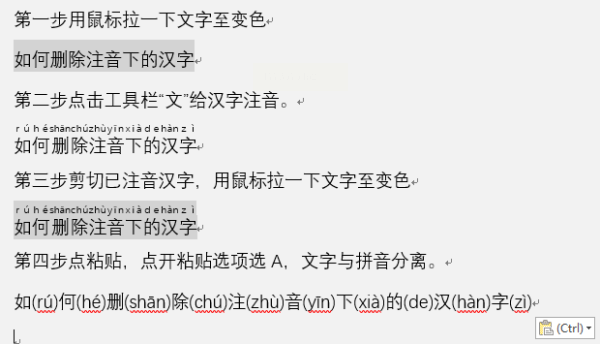 更准确的操作是:粘贴后,选中拼音和文字,然后按Ctrl+H(替换),在查找内容中输入原文字,替换为空。或者直接: