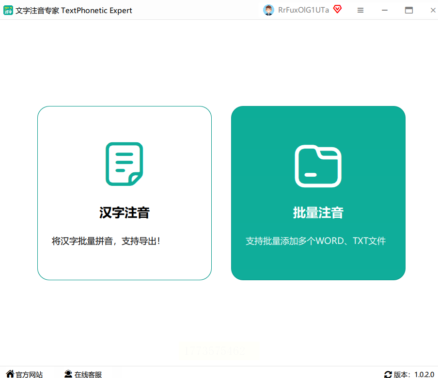 启动“文字注音专家”后,在首页菜单栏中找到【批量处理】或直接勾选“批量注音”选项(不同版本可能位置不同,仔细看界面,通常在顶部或左侧)。点击进入后,软件会显示操作窗口。