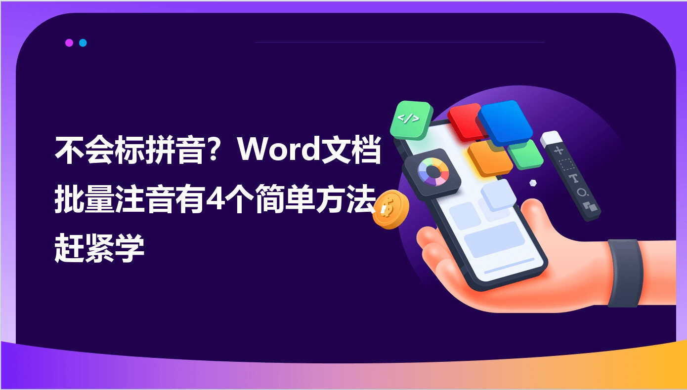 在日常工作和学习中,你是不是经常遇到需要给多篇Word文档里的汉字标注拼音的情况?比如老师批改学生作文要标注易错字拼音,出版社校对书籍需要给生僻词加拼音,或者家长辅导孩子作业时要把课文里的拼音都标出来。手动一个个字打拼音不仅耗时耗力,还容易出错,尤其是面对几十上百页的文档时,简直是个大工程!今天就来分享4个亲测有效的批量给文档加拼音的方法,从简单操作到进阶技巧都有,让你几分钟就能搞定批量标注,节省出更多时间做其他重要的事。