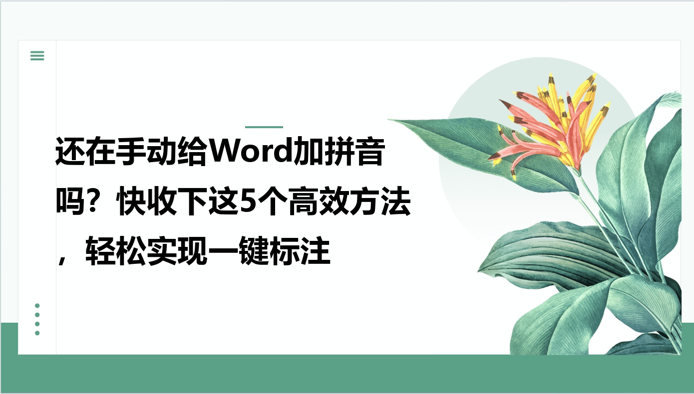 嘿,朋友们!今天咱们来聊聊一个特别实用的话题——怎么给Word文档批量加拼音。说真的,第一次碰到要给几十份文档加拼音的时候,我整个人都是懵的。你们能想象吗?一份几百字的文档,手动加拼音得花半个多小时,眼睛都要看花了。更可怕的是,稍微一走神就可能标错声调,回头还得重新检查,简直是恶性循环。