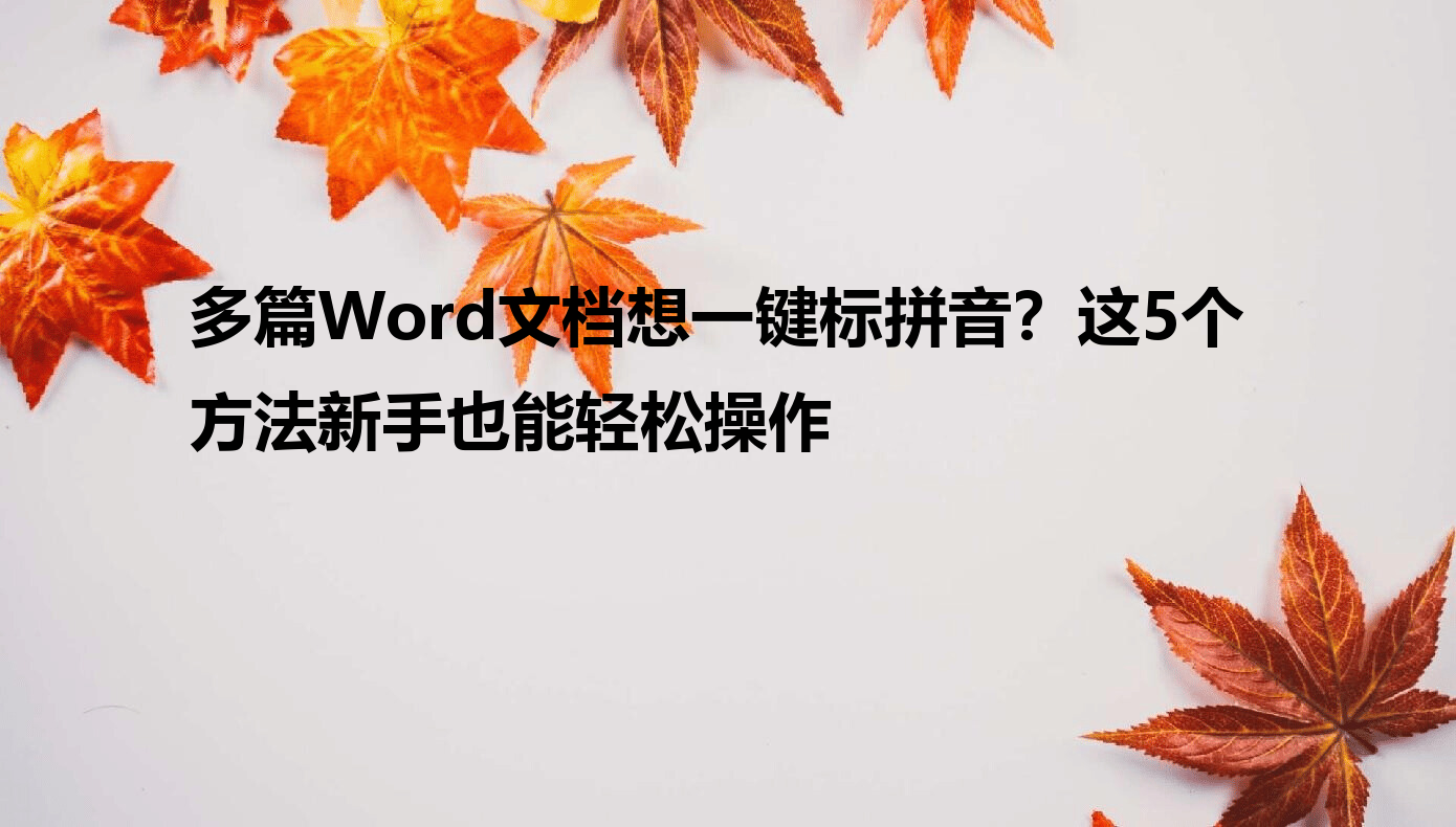 在教学备课、出版校对或日常办公中,为大量文档标注拼音是件令人头大的事。手动逐个给生字加拼音不仅耗时耗力,稍不注意声调标错、字体混乱就可能影响文档质量。今天就为大家分享5种实用方法,从软件操作到在线工具,从单篇到批量处理,帮你彻底解决拼音标注难题,让文字处理效率翻倍!