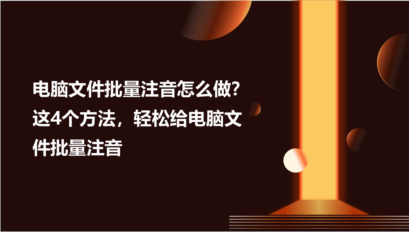 在日常办公和学习中,电脑文件批量注音是一项常见需求,无论是处理学生作业、古籍整理还是文档校对,都需要清晰的拼音辅助。本文将从基础手动操作到专业软件应用,详细介绍4种不同场景下的电脑文件批量注音方法,涵盖纯文本标注、文档批量处理、在线转换等实用技巧,帮助读者根据自身需求快速掌握注音技能,提升工作效率。