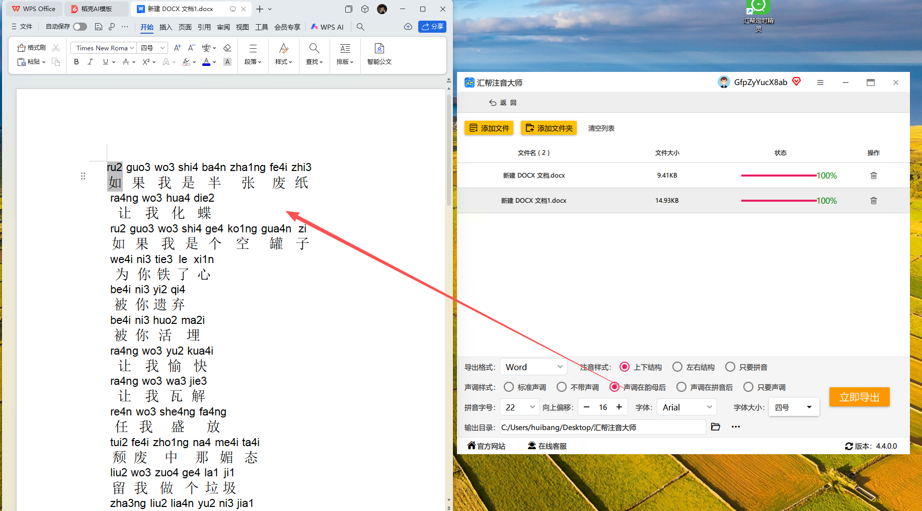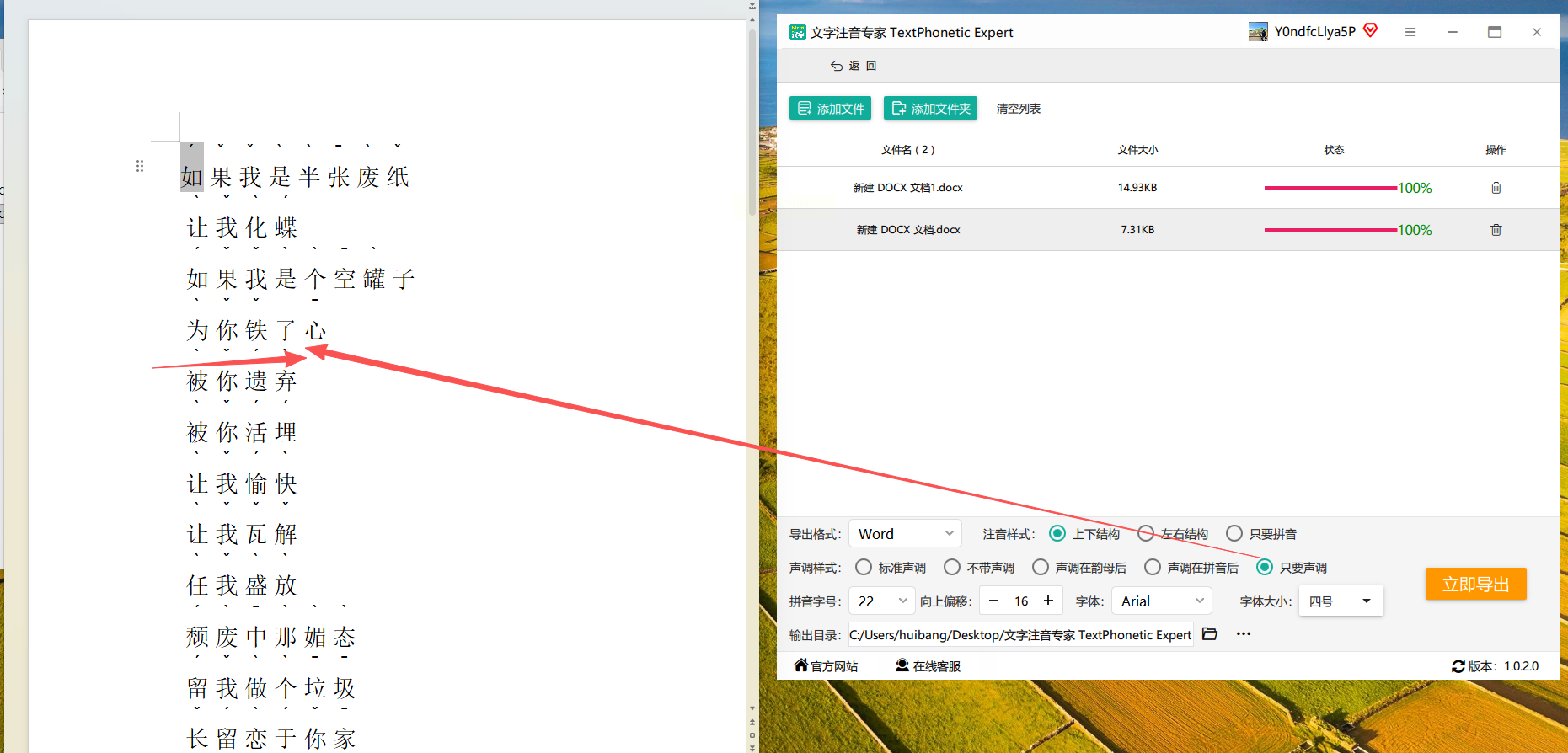 批量处理能力强,能同时改10个文档,高效完成拼音加音调需求