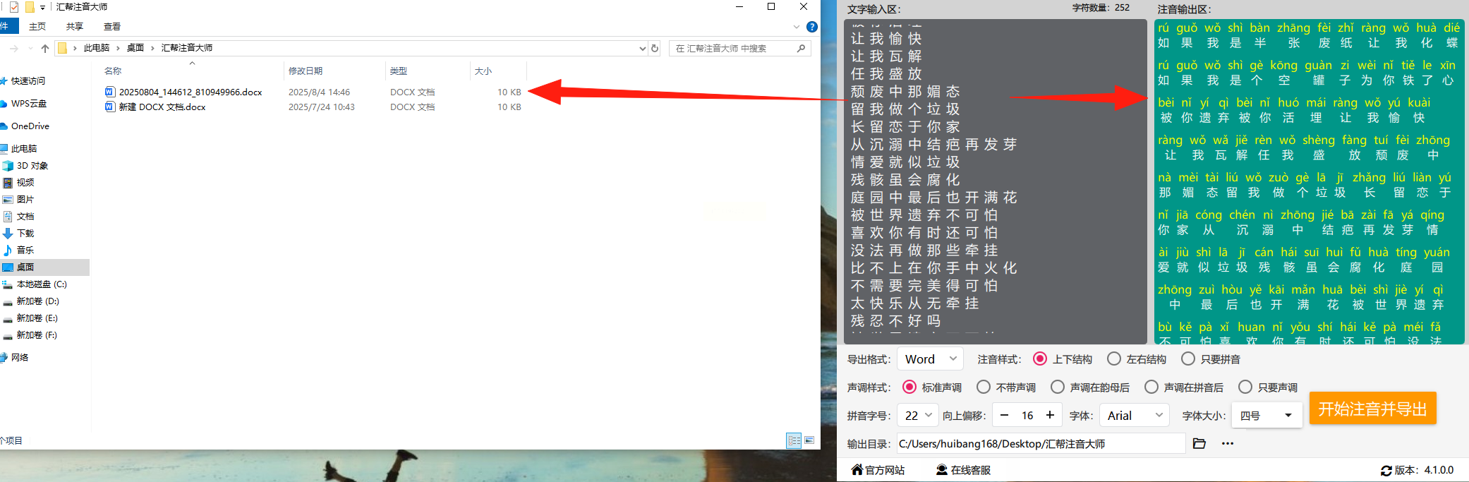 推荐理由:专门做汉字注音的工具,和汇帮类似,操作简单,适合纯文字文档做整篇文章加拼音,导出格式也多。