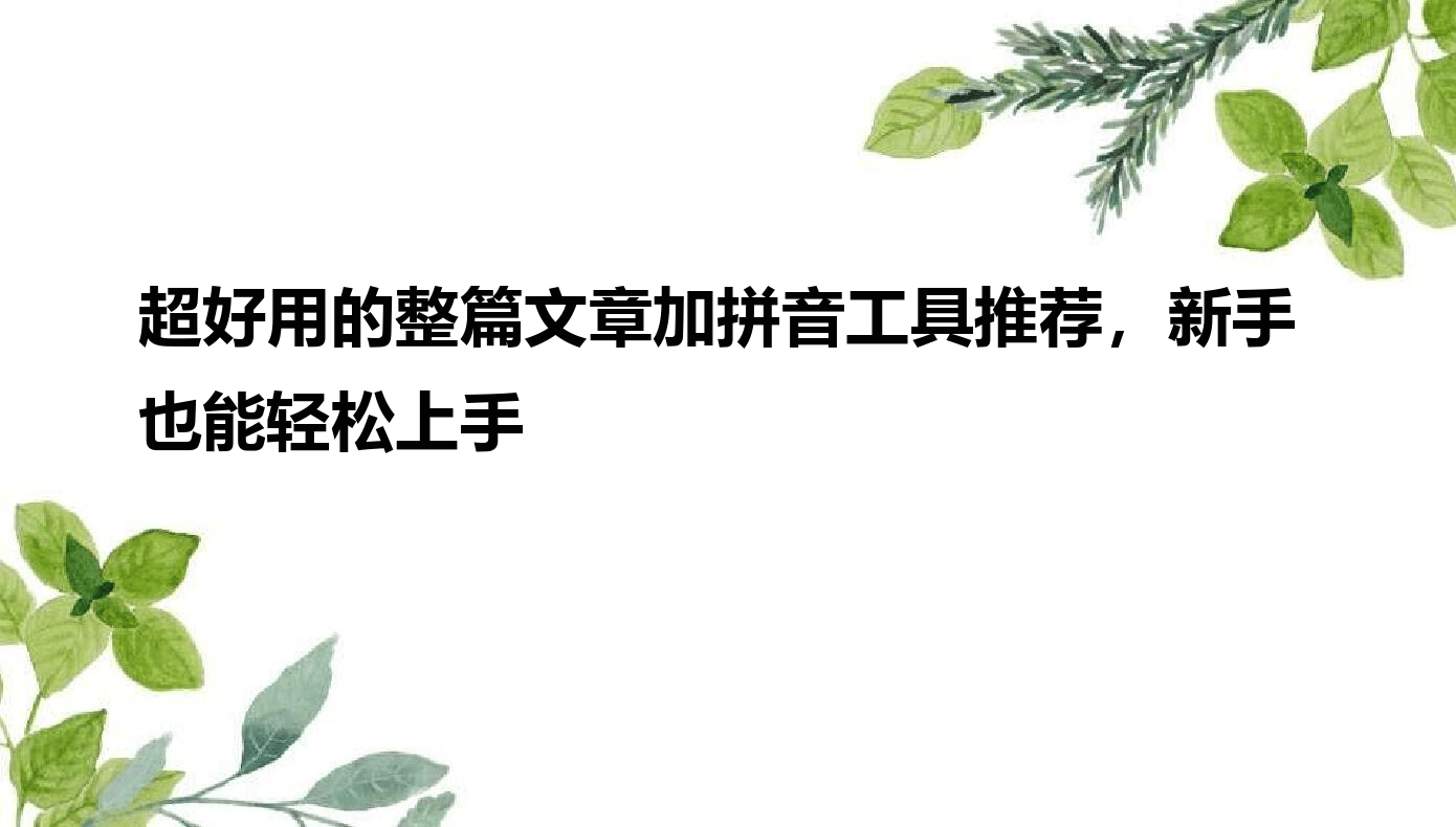 平时写文章、整理资料,不管是给学生标课文拼音,还是自己记笔记加注释,手动标拼音真的又慢又容易错。其实现在手机电脑上有好多软件,不用复杂操作,几分钟就能搞定整篇文章加拼音,新手也能轻松上手~下面就给大家推荐几个超好用的工具,每个都亲测简单,照着做就行!