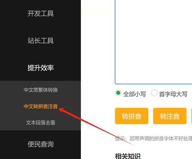 用浏览器搜索“在线注音工具”,推荐选“中文转拼音注音”类页面。进入后找到“中文转拼音注音”选项点进去。