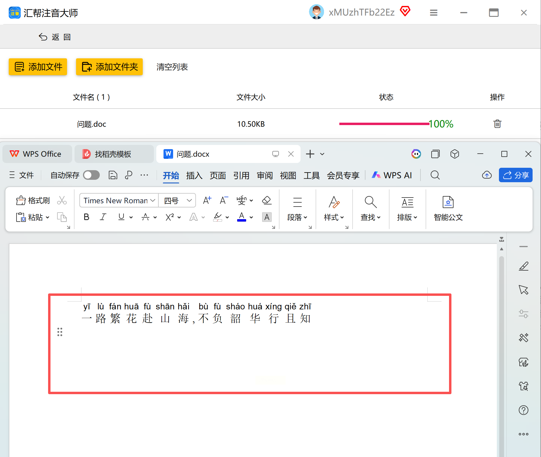 1. 用WPS打开文档(直接打开Word格式的也没问题),选中需要加拼音的文字(全文选中也行,适合长文本);