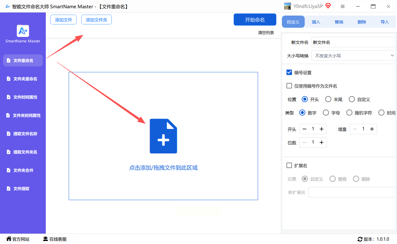 2. 中间区域上传文件,支持添加单个文件、整个文件夹,或者直接拖拽文件进来,批量处理很方便。