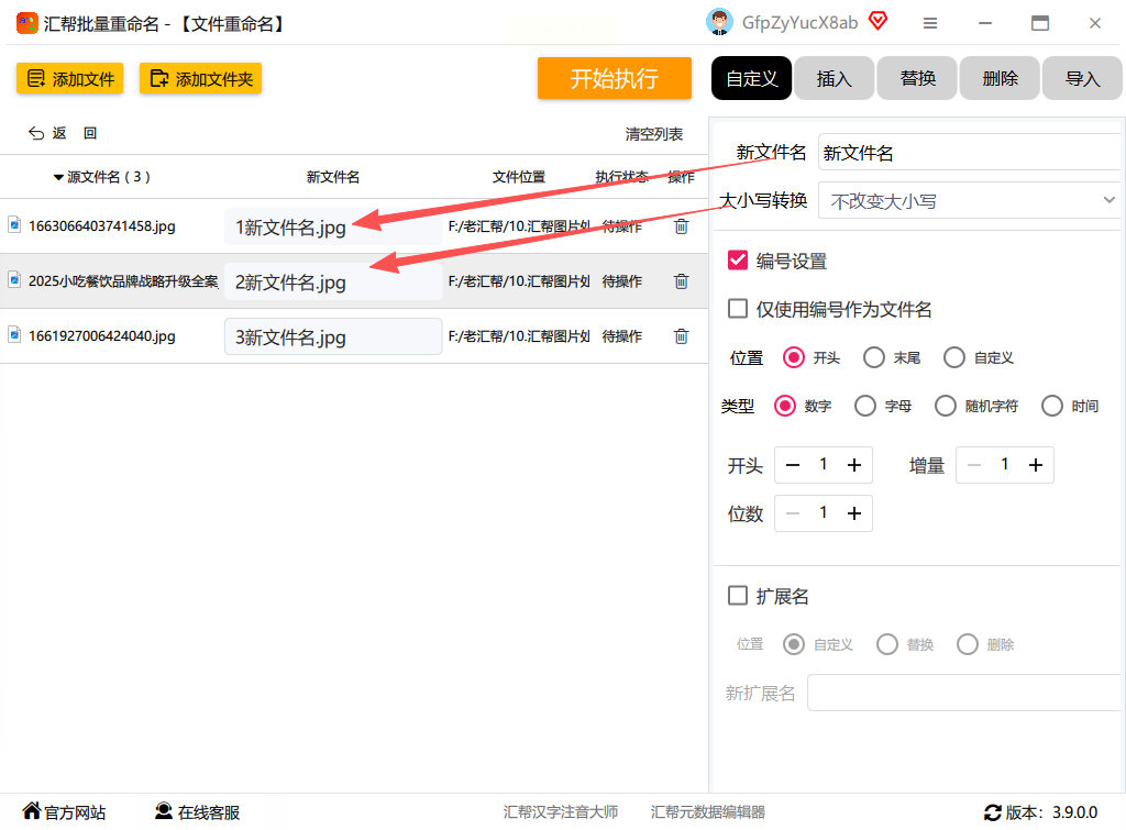 5. 点击“开始执行”,等完成后就能看到文件名已经改好了。