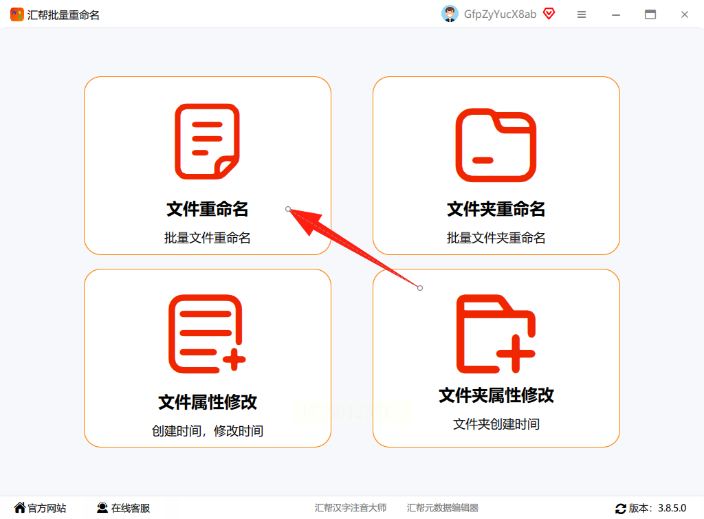 1. 打开汇帮批量重命名软件,点击界面左侧的「文件重命名」选项卡。