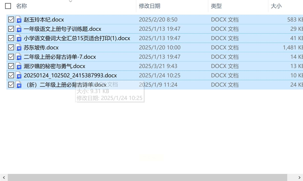 打开文件所在文件夹,按Ctrl+A全选所有文件(或按住Ctrl逐个选择),右键点击任意选中文件,选择“重命名”。