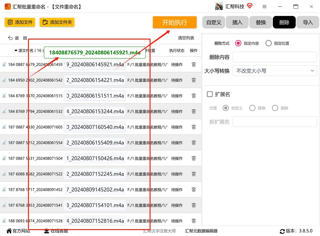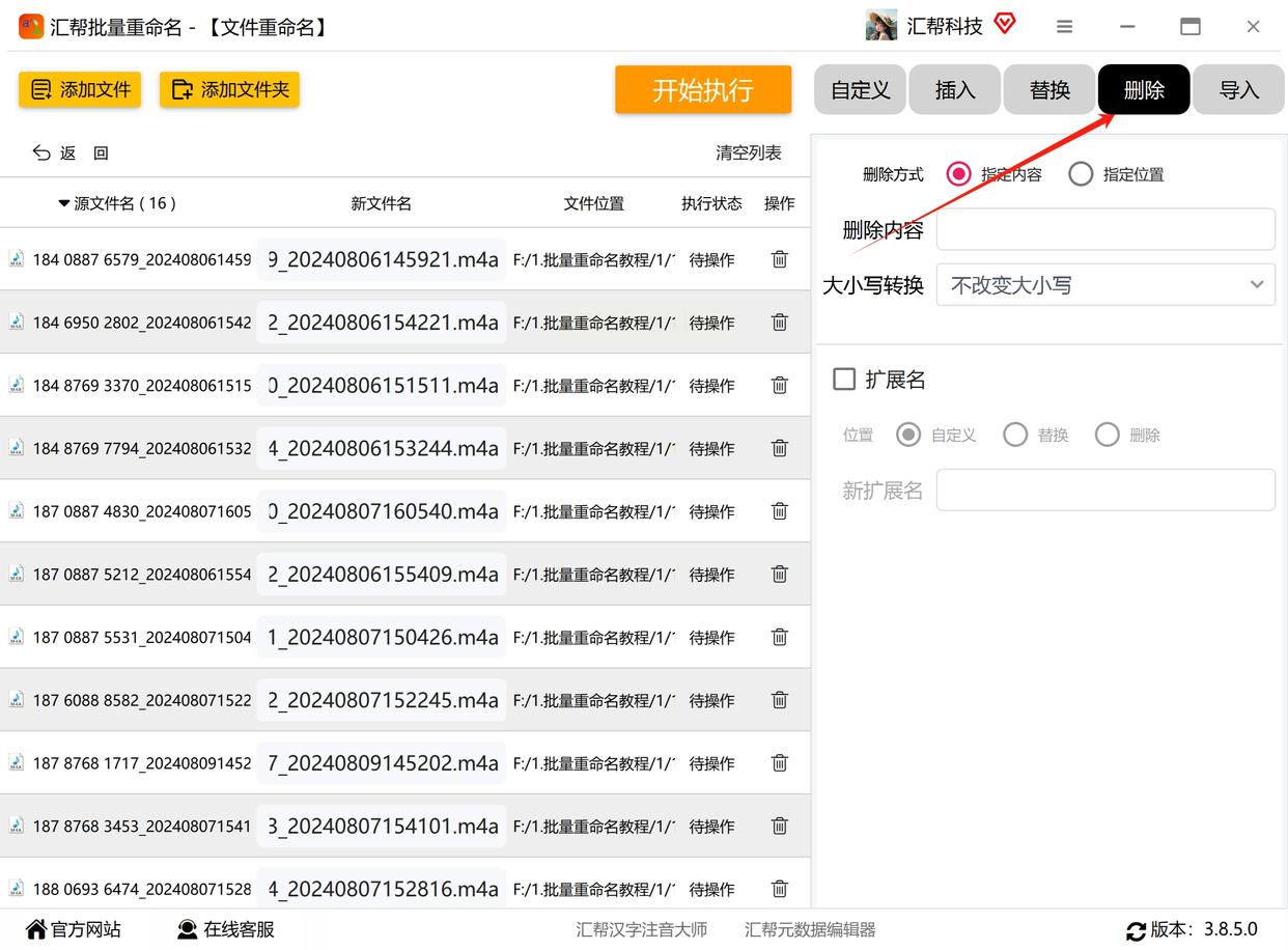 这款软件比上一款功能更全面,支持「指定位置删除」「正则表达式替换」等高级功能,适合需要精确控制的场景。它对大文件、文件夹嵌套的兼容性更好,操作逻辑清晰。