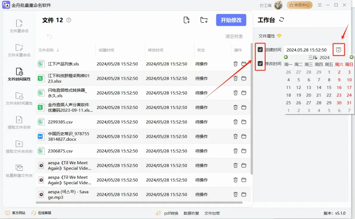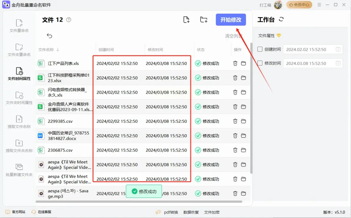 金舟批量重命名软件是另一款国产集成化工具,其“文件时间属性”模块专门用于调整文件的时间戳信息,操作流程清晰。