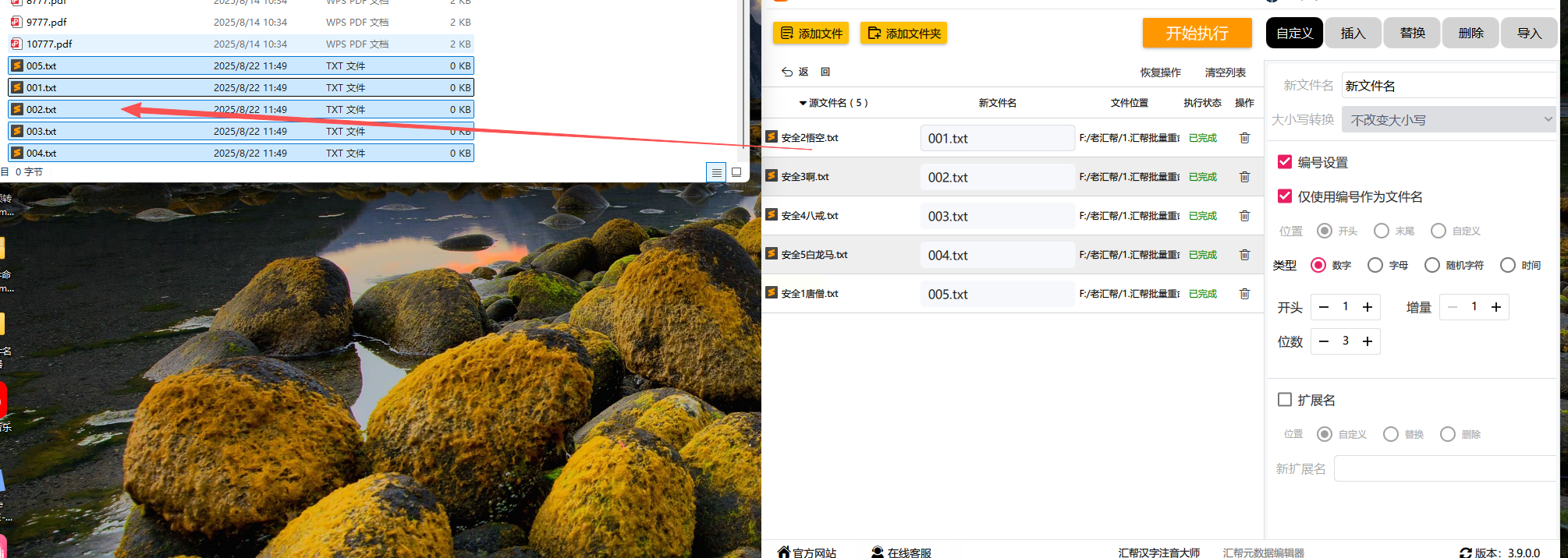 确认所有设置无误后,点击界面右下角的“开始执行”按钮,软件会自动完成批量重命名。
