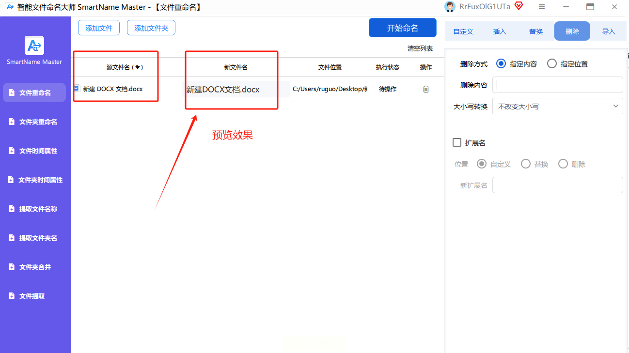 在文件列表中,新文件名会实时更新显示在“新文件名”列。确认无误后,点击“开始命名”按钮,软件会依次处理所有文件。
