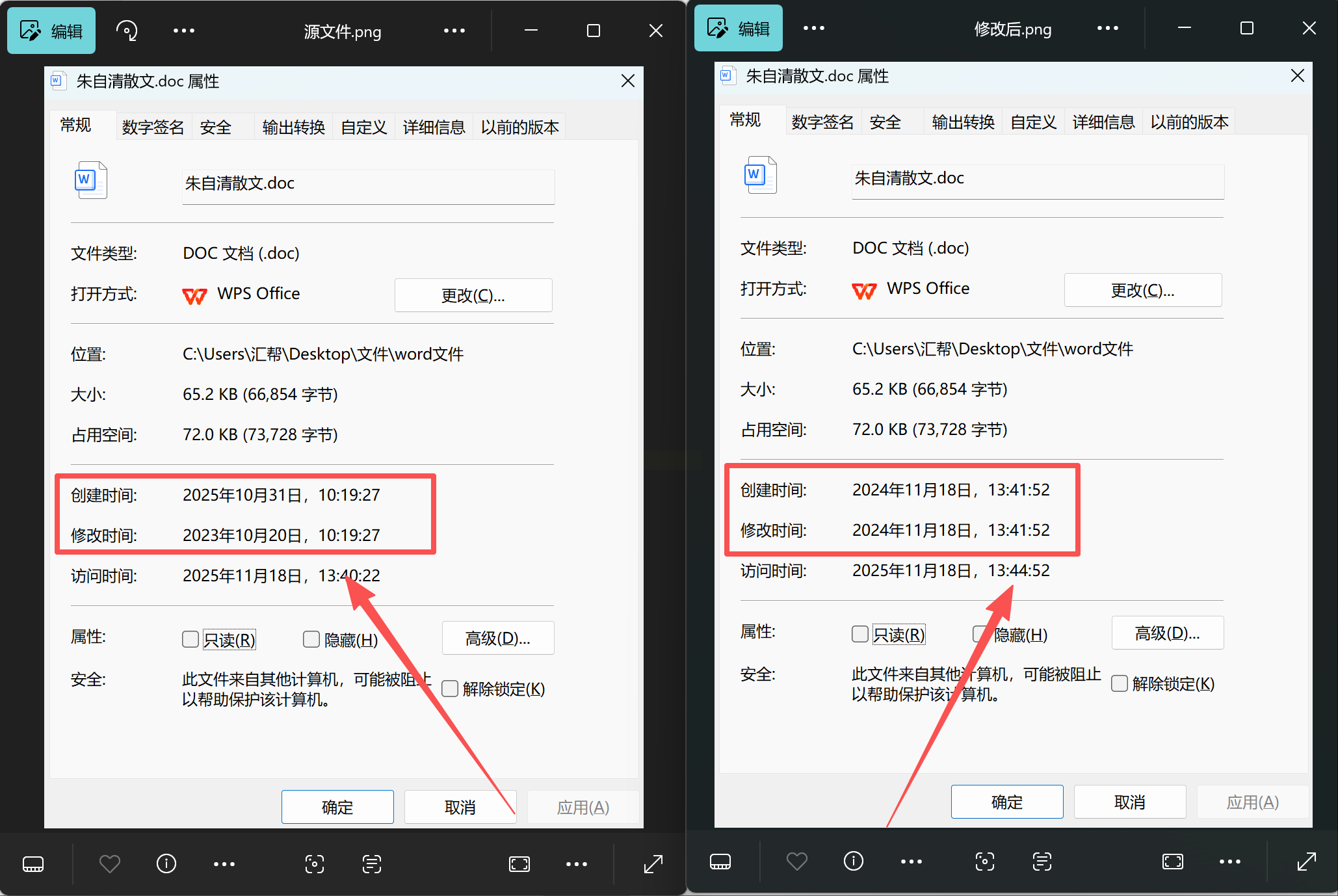 4. 验证结果:通过Windows资源管理器查看文件属性,右键点击文件→"属性"→"常规"标签,核对修改后的时间是否符合预期。