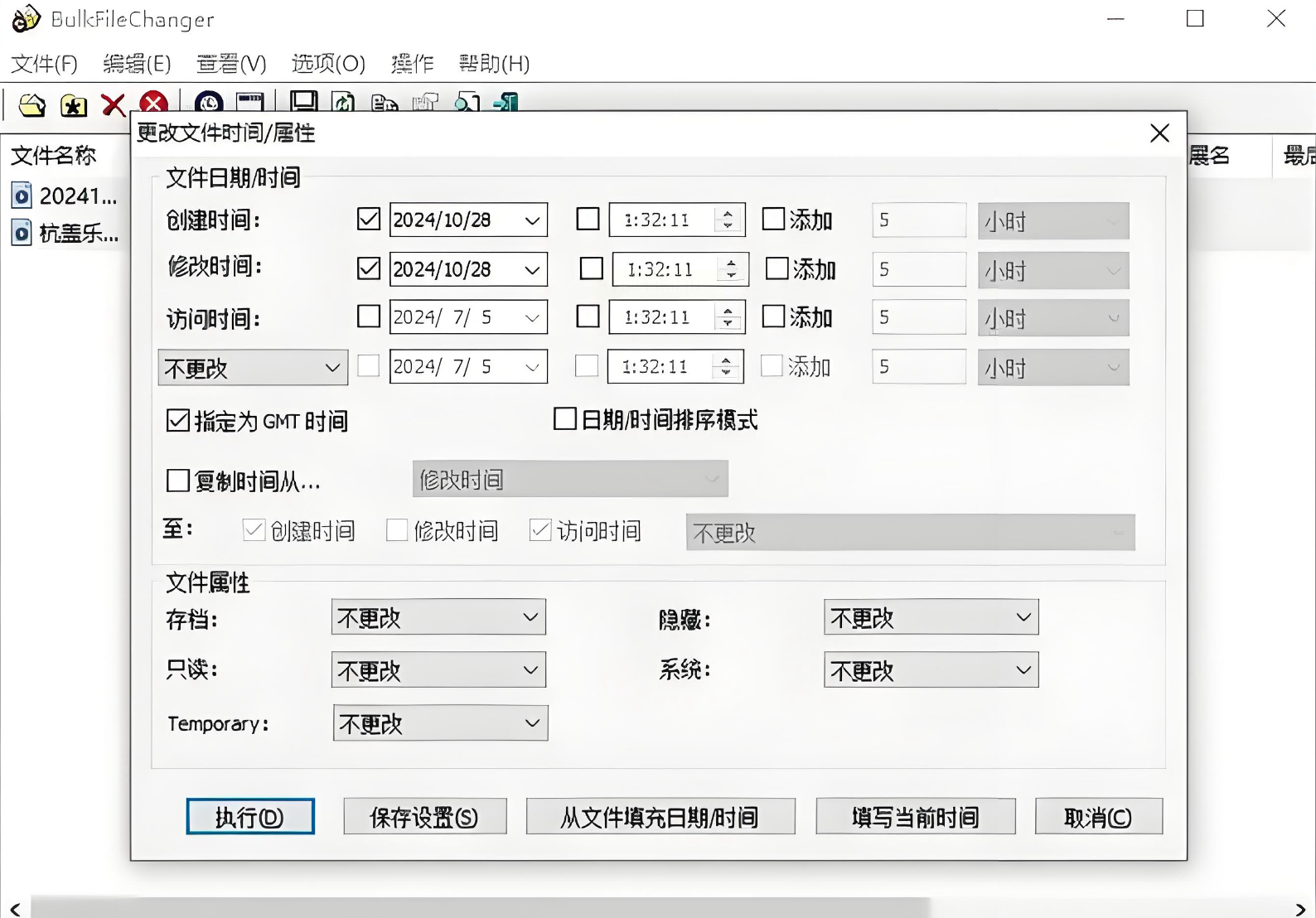 2. 时间修改配置:选中文件后,点击"Actions"菜单→"Change Time/Attributes",在弹出窗口中: