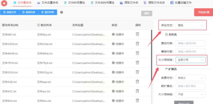 4. 看一眼左侧的新文件名预览,确认都变成小写了。