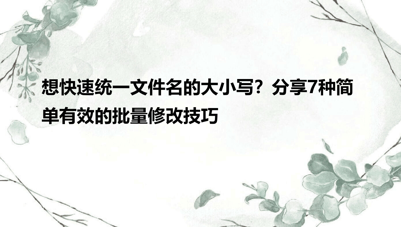 哎,小王,你上次是不是问我怎么把一堆文件名的大小写统一改掉?我猜你肯定遇到过这种情况:下载了几百个文件,有的全大写,有的全小写,还有的大小写混在一起,看着就头大。找起文件来简直像在玩“大家来找茬”,眼睛都快看瞎了。更别说有些软件对文件名大小写特别敏感,一不小心就报错,真是让人血压飙升。