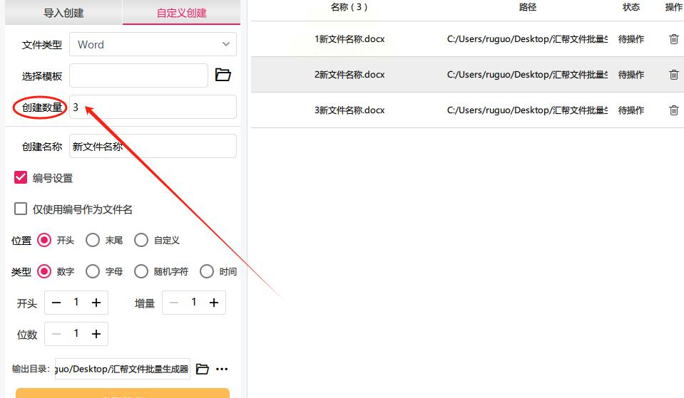 在“创建数量”那里输入你需要的文件夹个数。比如你要为50个客户建文件夹,就输入50。