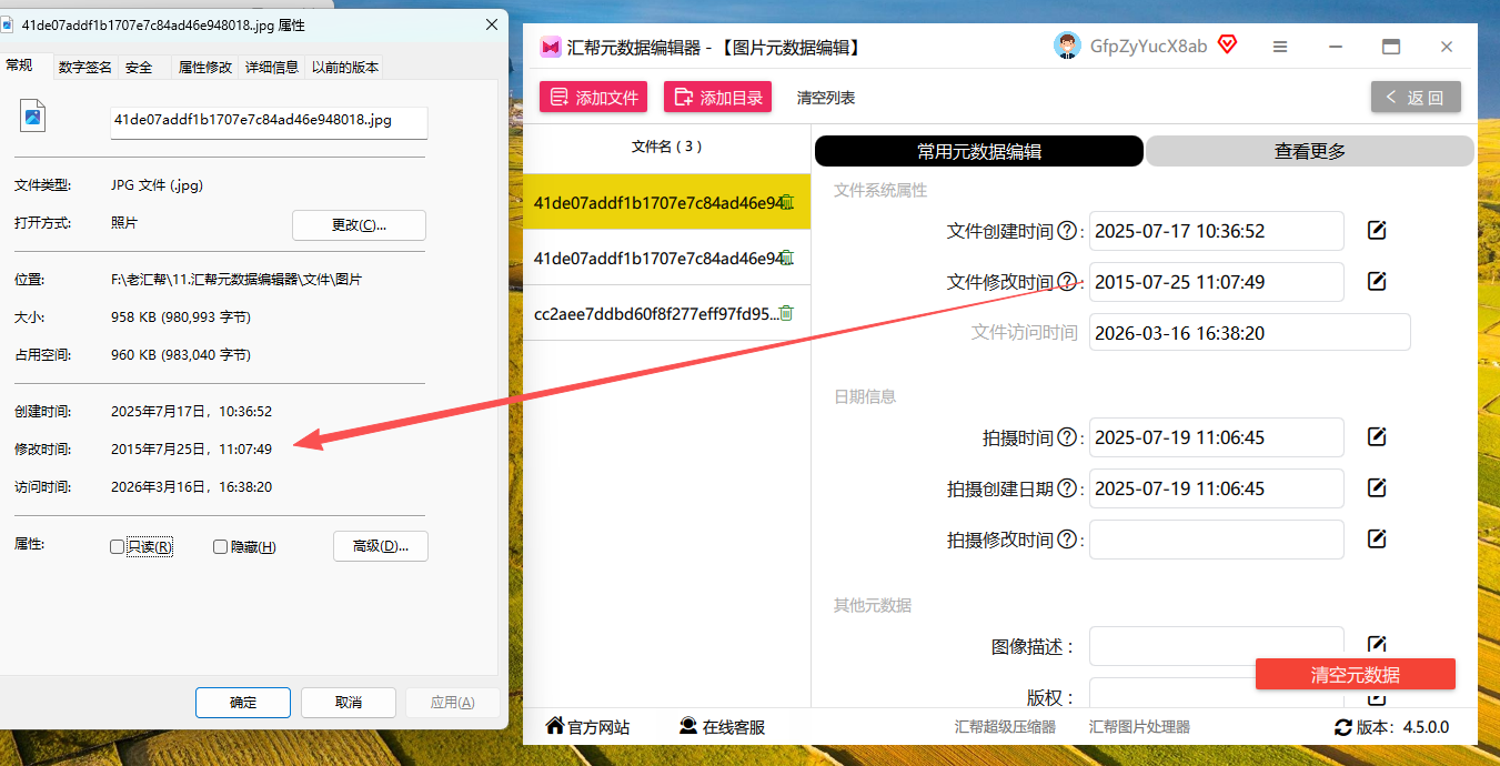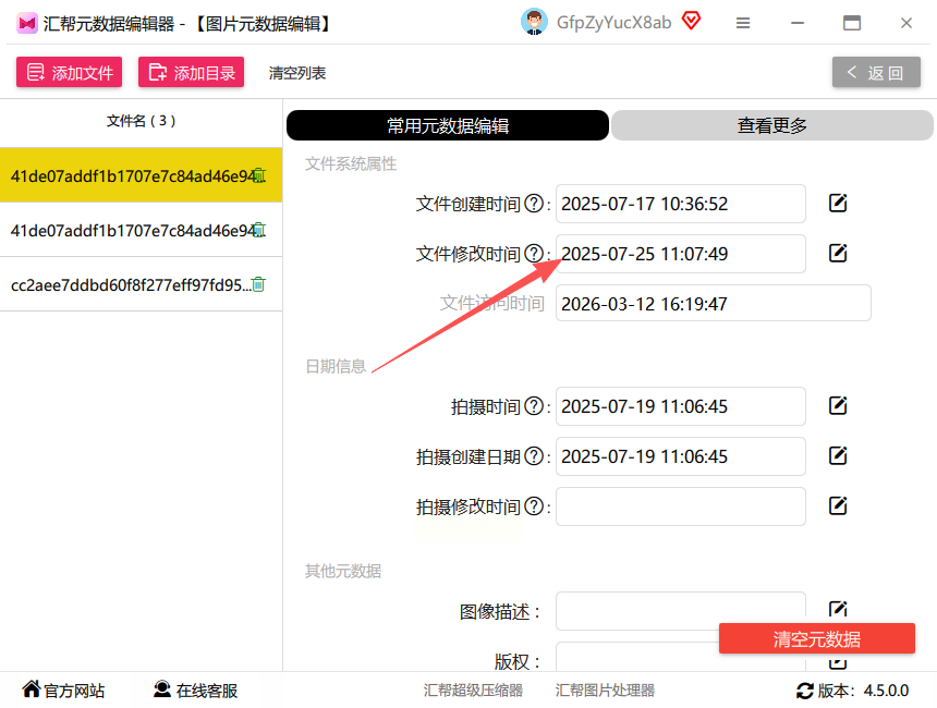 这个工具专门用于图片元数据编辑,界面操作清晰,支持批量处理,新手也能快速上手修改图片的修改时间。