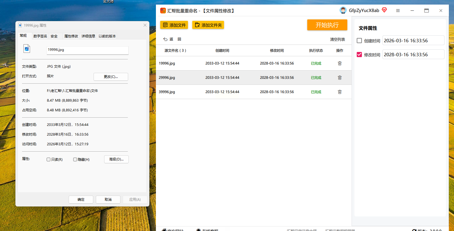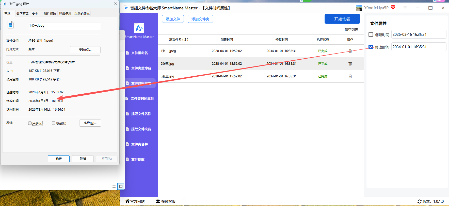 处理完成后,到图片属性中查看,确认修改时间是否成功更新。
