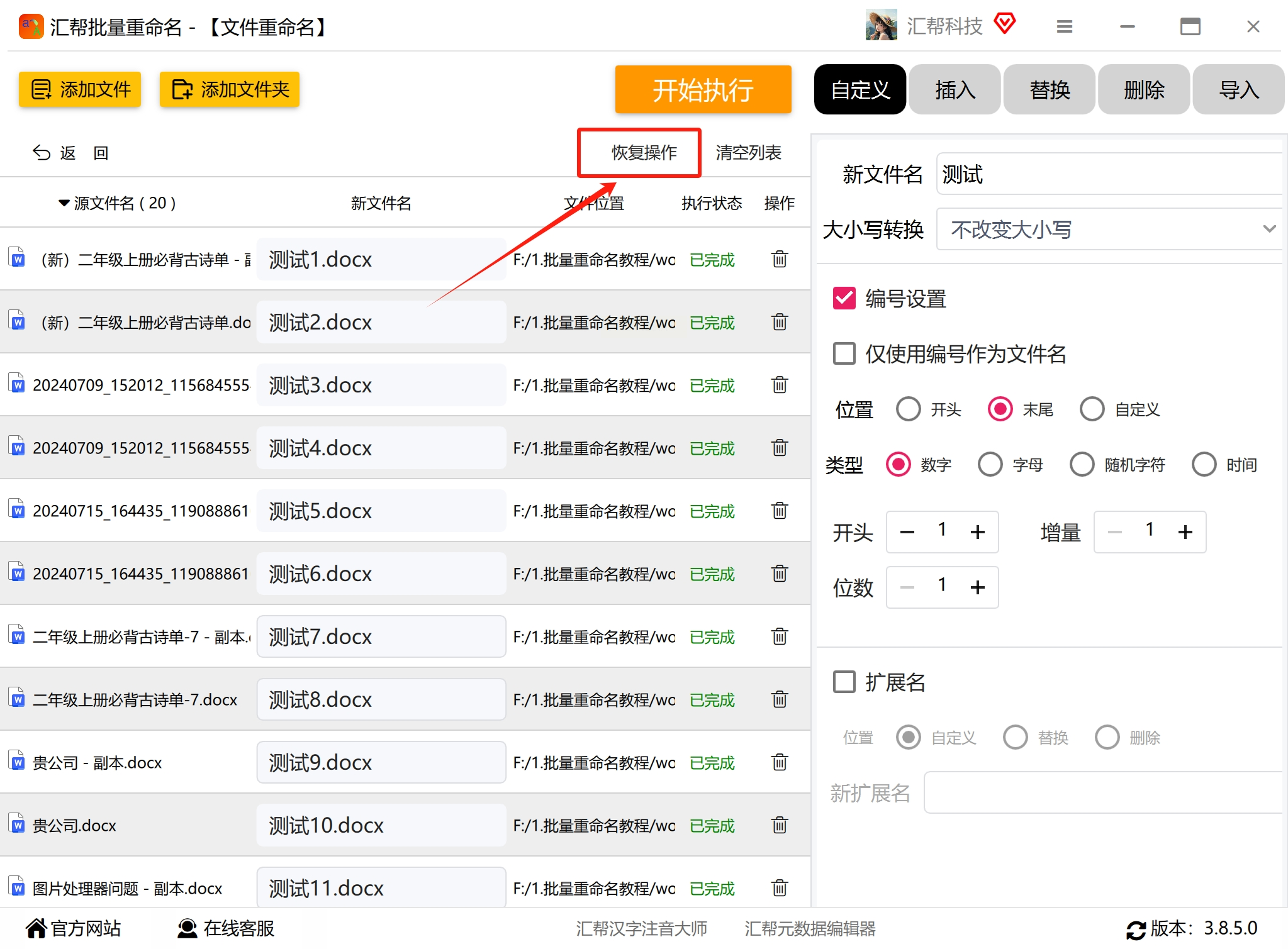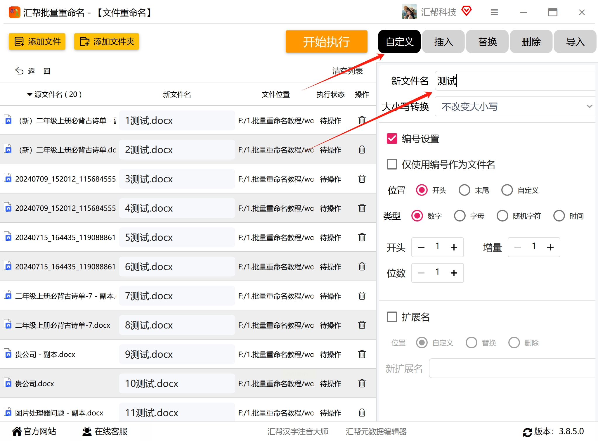 第一个方法、借助“汇帮批量重命名"软件可以批量修改大量word文件名