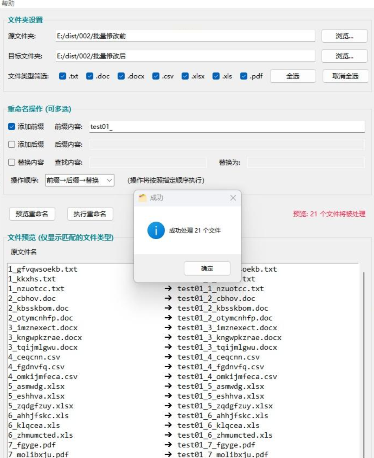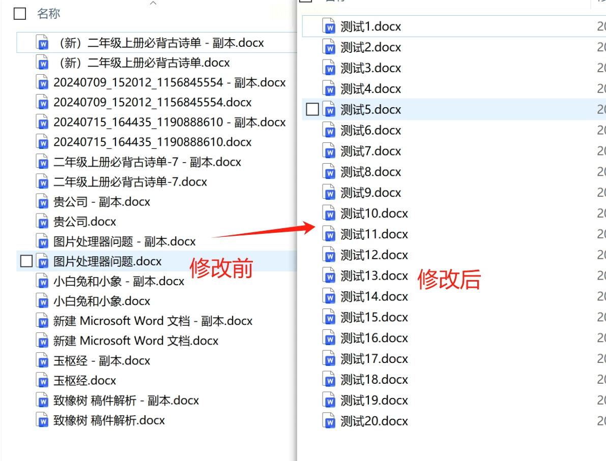 - 改「前缀/替换内容」:比如prefix = "2023年度报告_",replace_str = "旧文件名",new_suffix = ".docx"