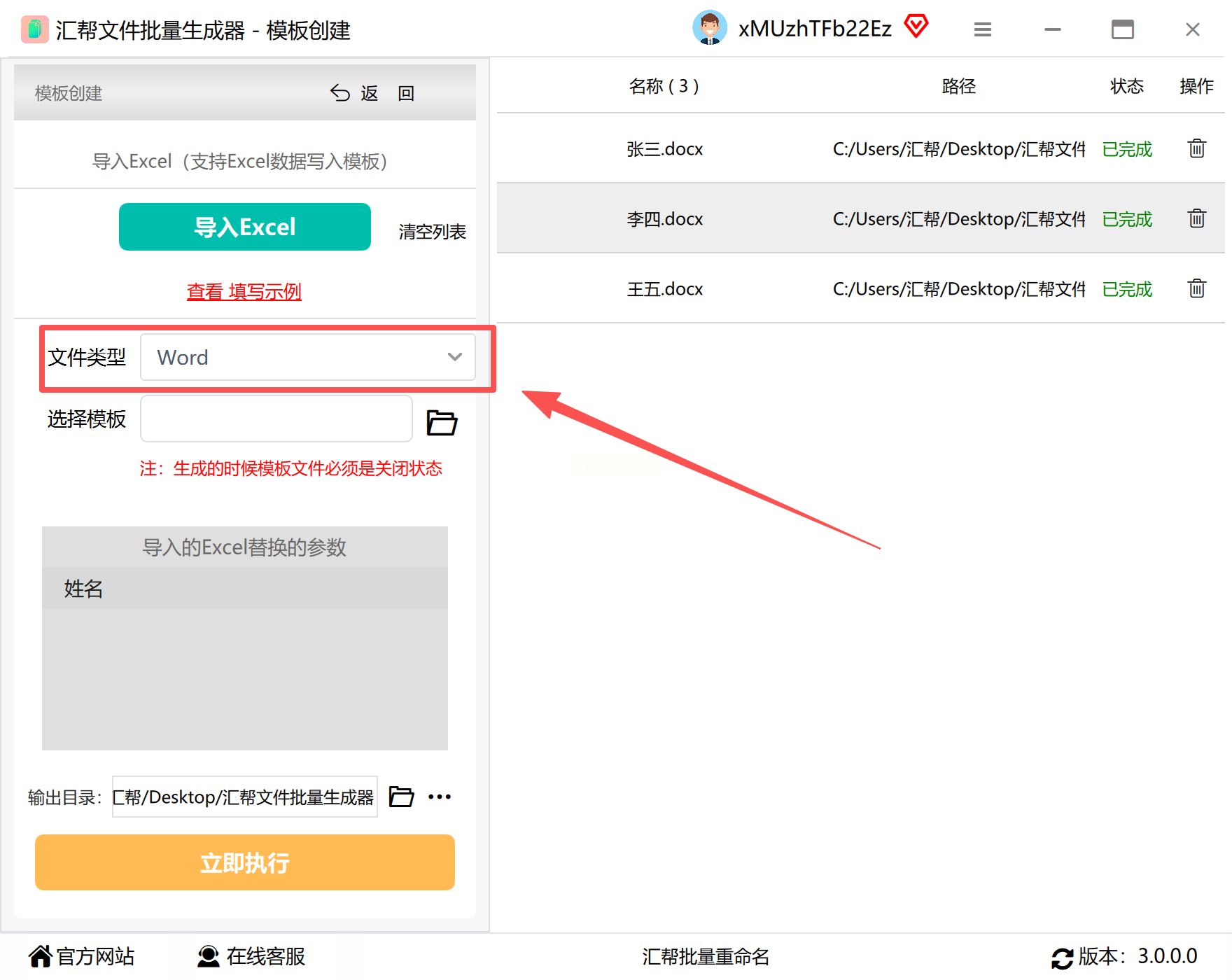 汇帮文件批量生成器是一款专注于文档批量处理的工具,特别适合需要快速生成标准化文档的场景。其操作流程简单直观,即使是初学者也能轻松上手。
