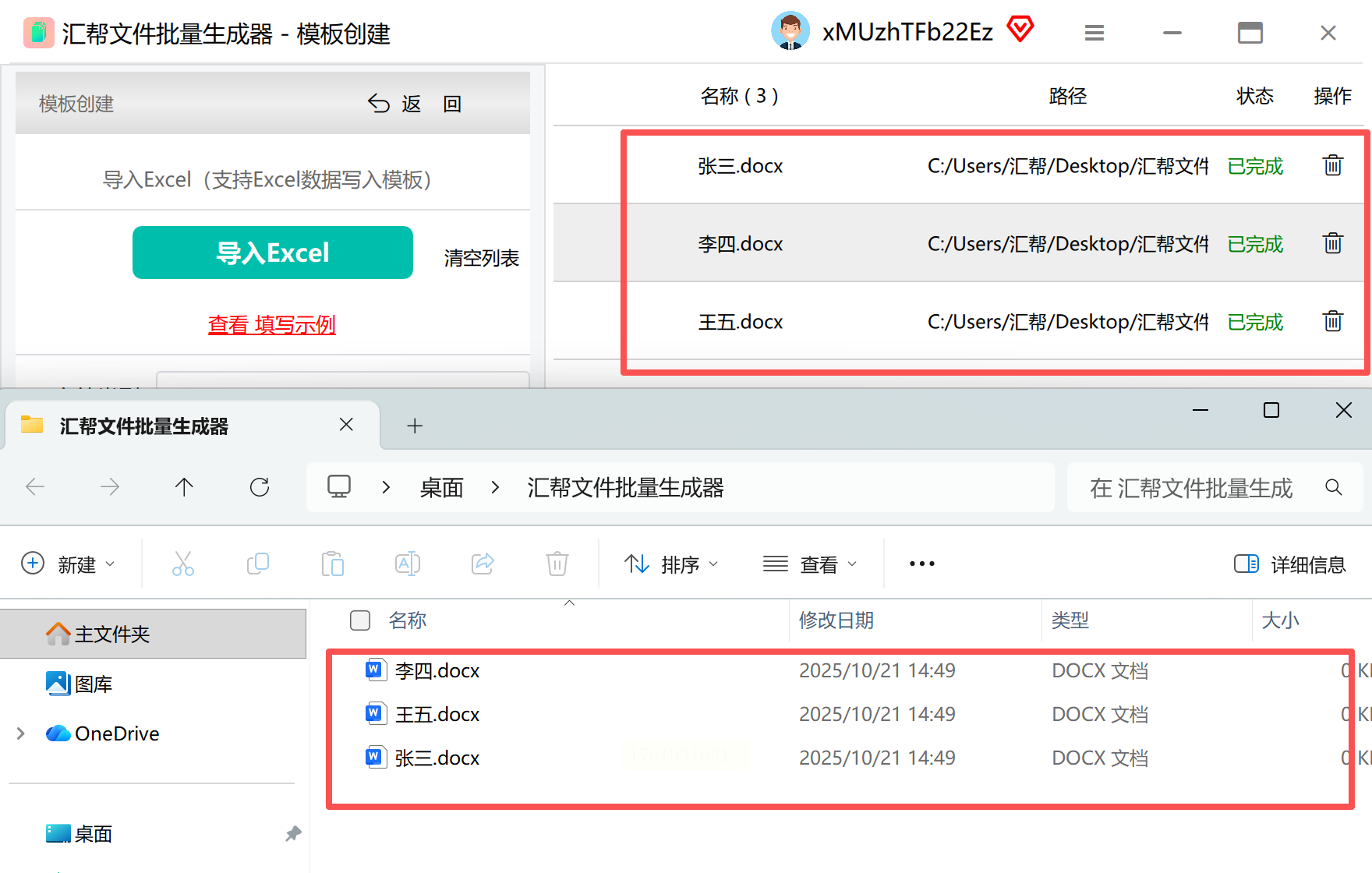 步骤四:查看生成结果,系统会将文档保存到指定位置,并支持批量下载或分享。
