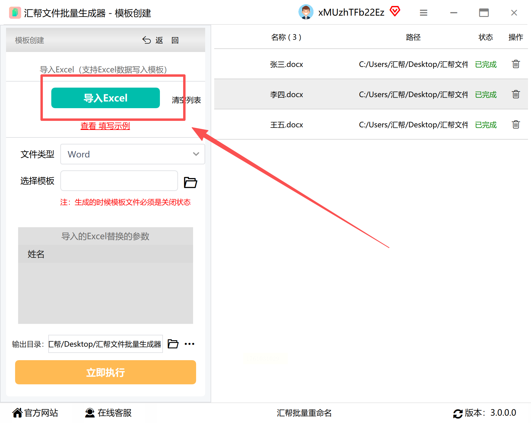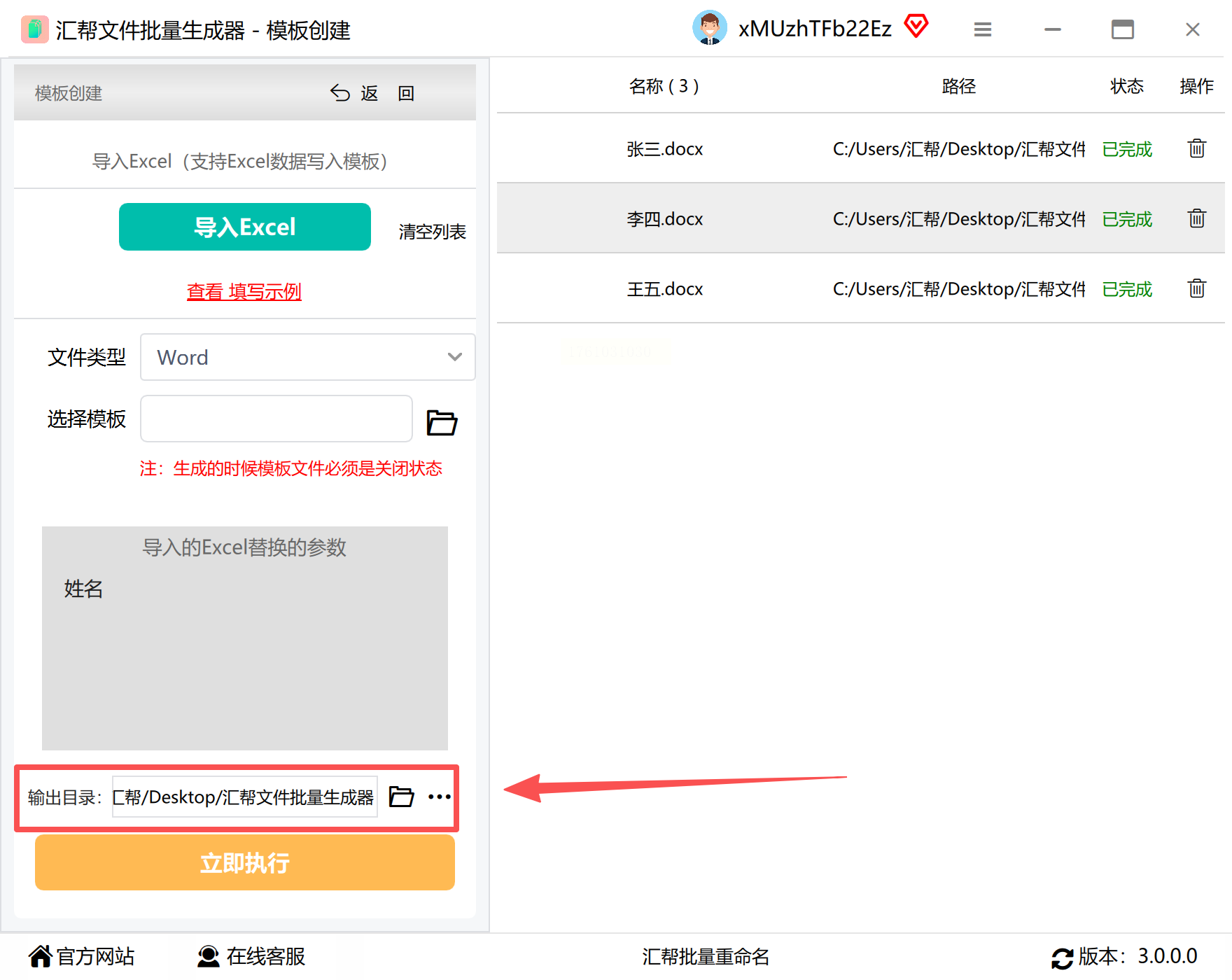 步骤五:点击“立即执行”按钮,系统开始批量生成文档。右侧进度条实时显示任务状态,方便用户监控整个过程。