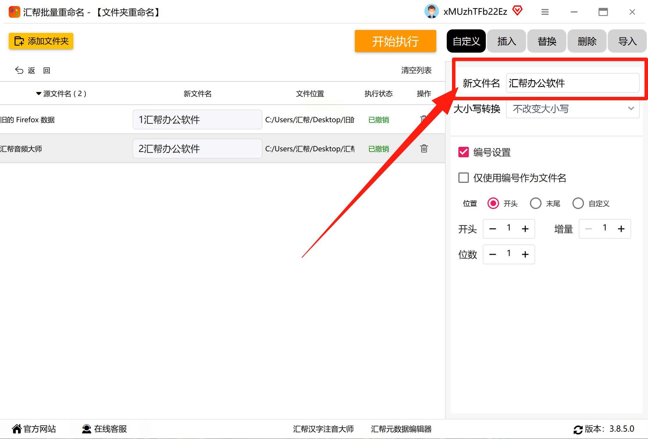 4. 点击"开始执行",软件自动校验文件名唯一性并完成修改