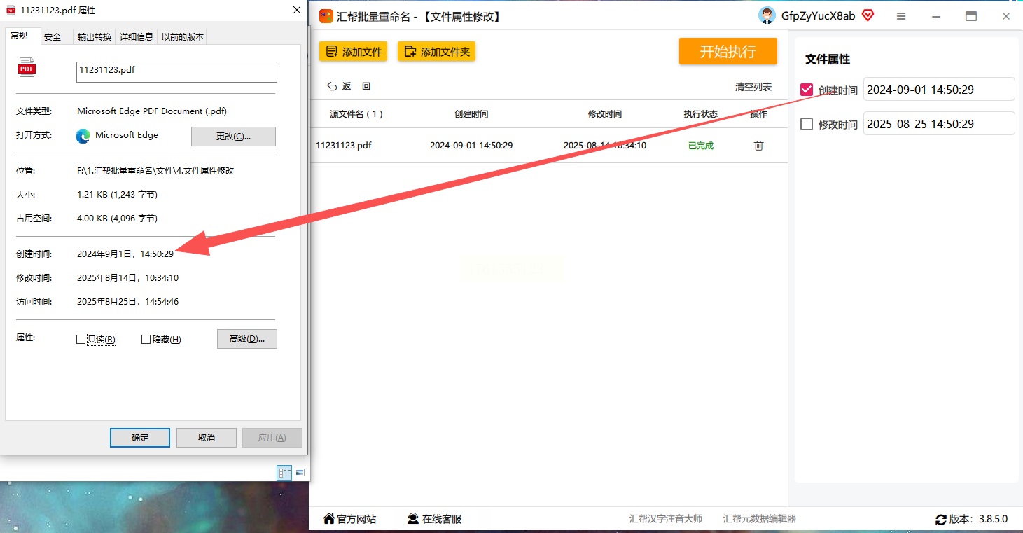 步骤五:最后,点击界面上的“开始执行”按钮。软件会迅速完成修改,你可以在文件所在文件夹中查看,文件的创建时间已经更新了。