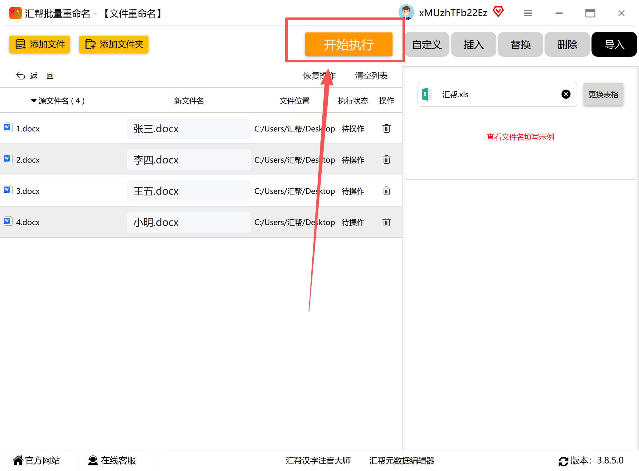 汇帮批量重命名是一款专为办公场景设计的文件处理工具,无需复杂操作即可完成批量重命名任务。以下是具体操作步骤: