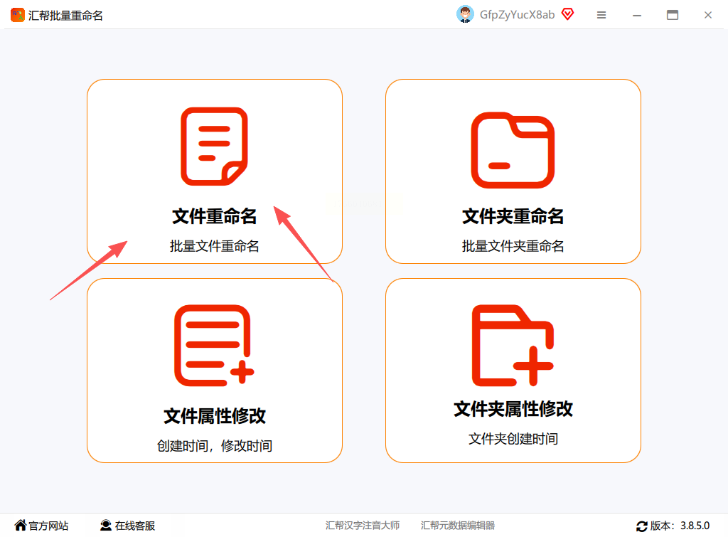 首先,你需要去官网下载《汇帮批量重命名》软件。下载完成后,双击安装包进行安装,安装成功后打开软件,界面会很清晰地展示几个主要功能选项,找到“文件重命名”这个选项并点击进入。