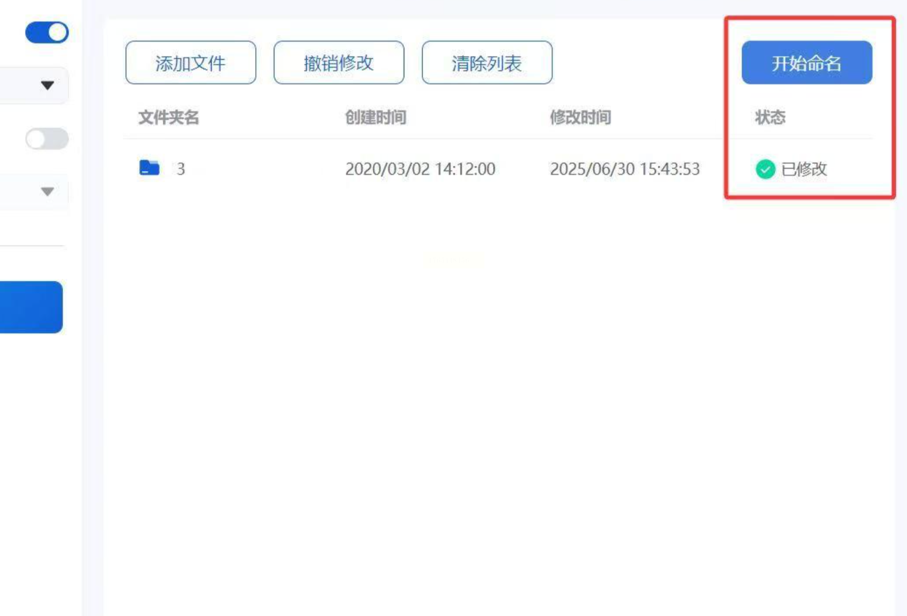4. 执行修改:点击右上角的“开始命名”按钮,软件会自动处理所有文件夹。