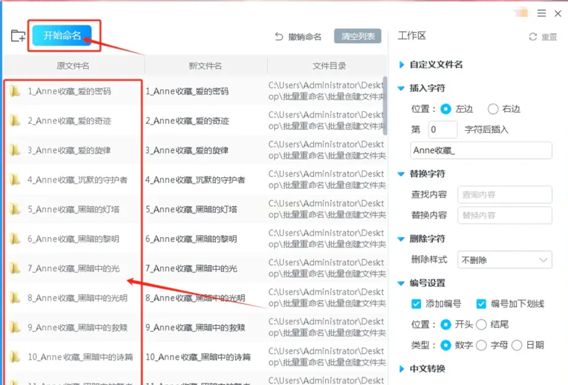 5. 执行改名:点击“开始命名”,等待完成后检查结果。