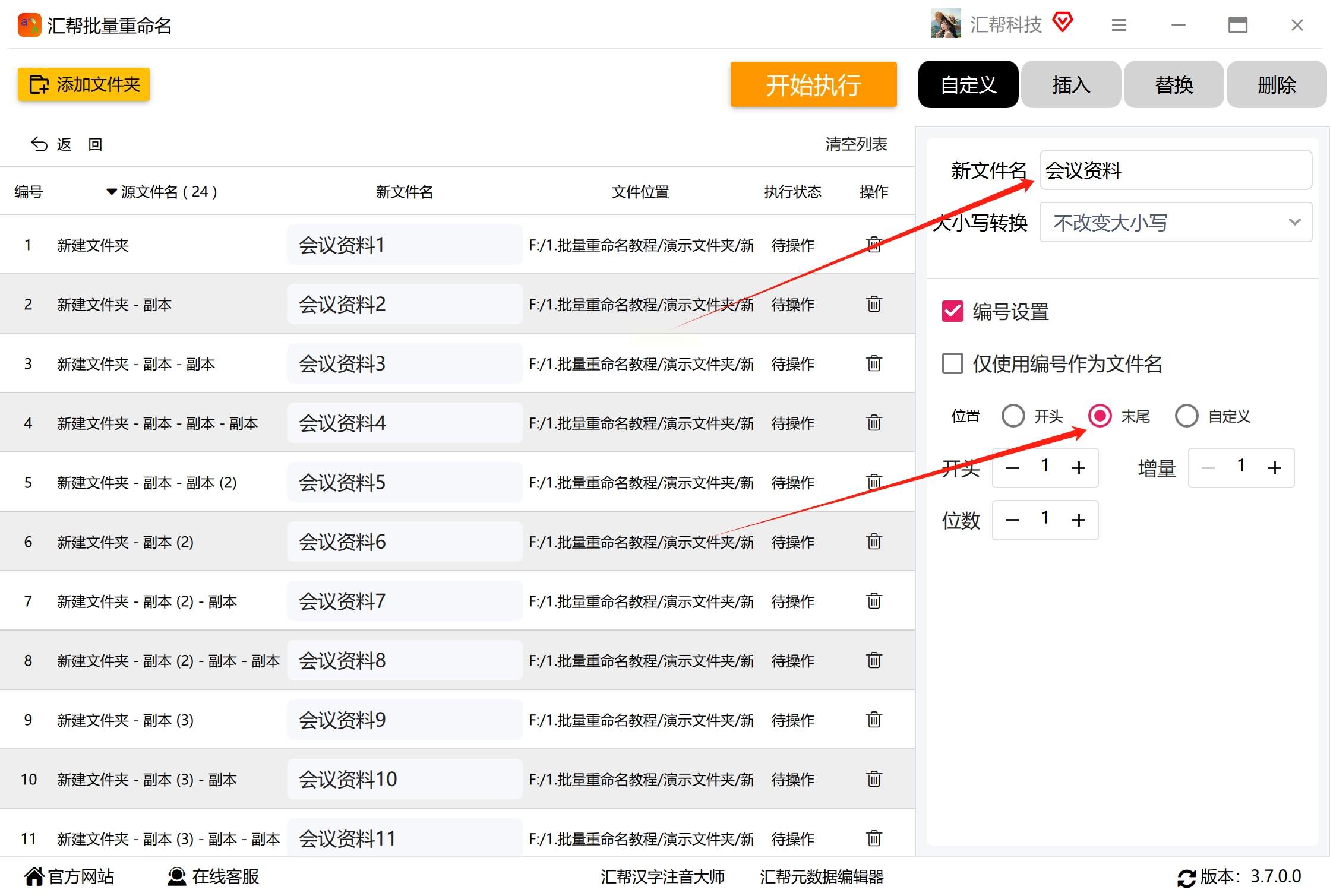 - 基础命名:输入统一前缀,如“客户资料_”;
