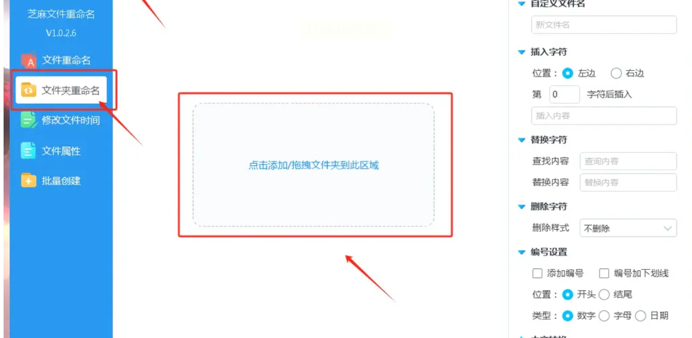 - 打开软件后,点击左侧“文件夹重命名”按钮;