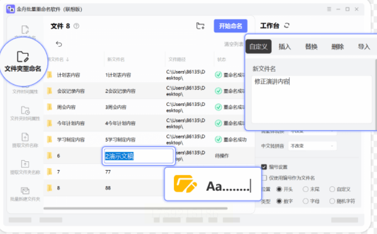 如果你有大量文件夹需要按特定的Excel表格命名,金舟批量重命名软件就很合适,它支持直接导入Excel中的命名规则。