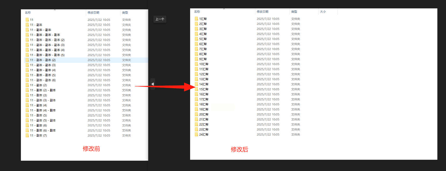 最贴心的是右边能实时预览,比如你想给所有文件夹加"2024Q3-"的前缀,直接输入就能看到每个文件夹的新名字,完全不用担心输错。