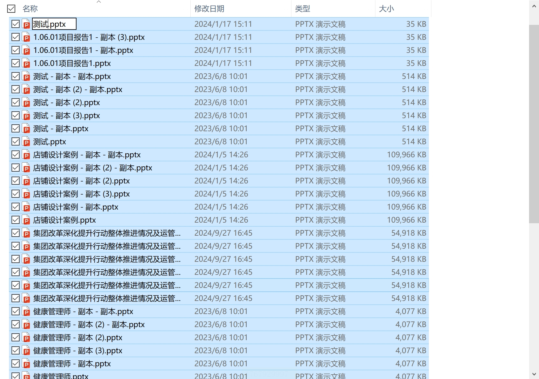 1. 打开包含PPT文件的文件夹,使用`Ctrl + A`快捷键全选所有需要重命名的文件,或按住`Ctrl`键手动多选。