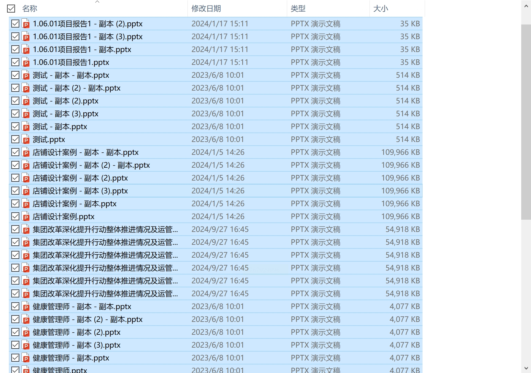 1. 进入包含PPT文件的文件夹。通过鼠标框选或勾选复选框,选中需要重命名的多个文件。