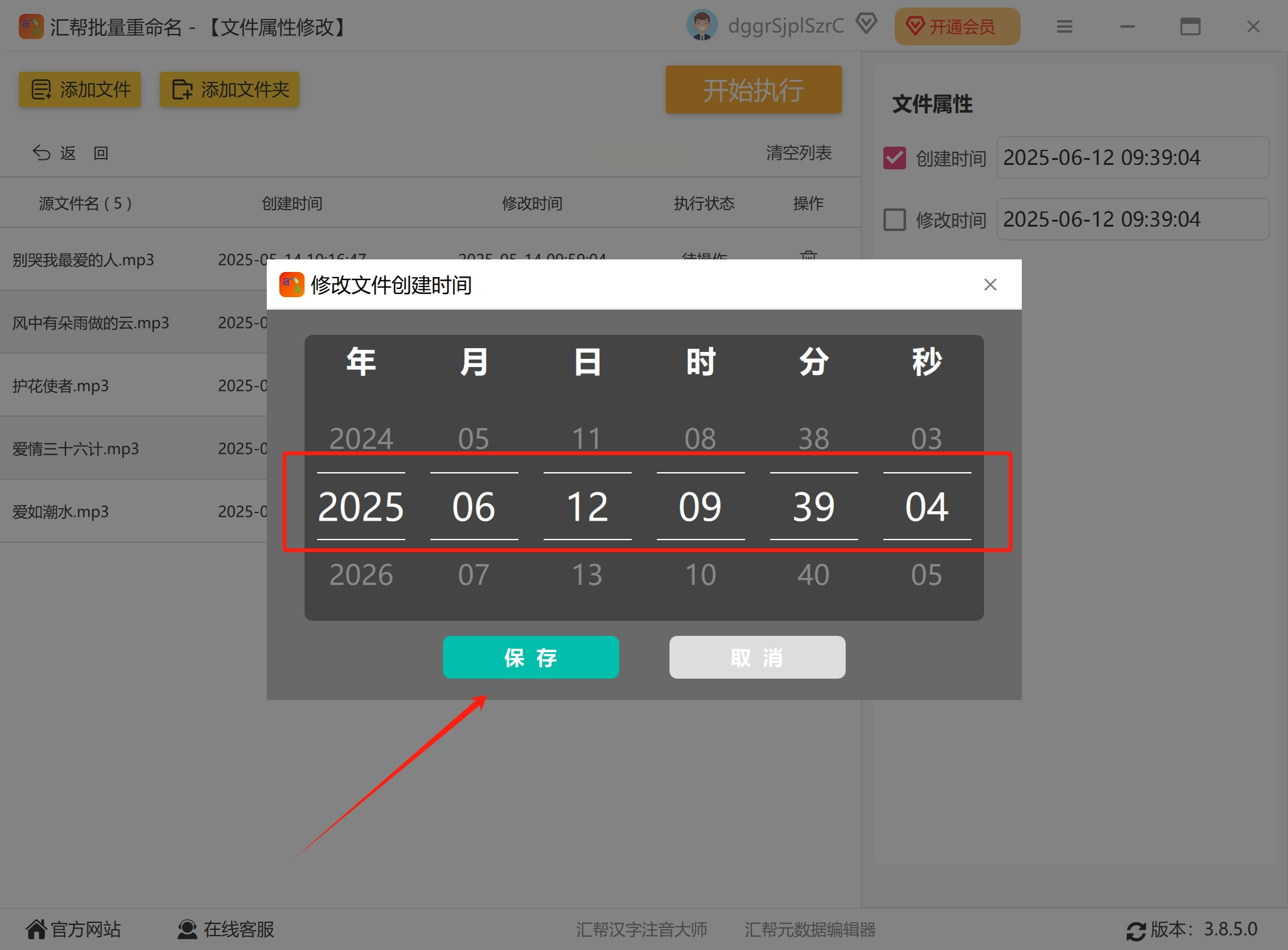 在弹出的时间设置窗口里,你可以像调整手机闹钟一样,通过上下箭头或直接点击来选择你想要的年、月、日、时、分、秒。比如,你想把所有周杰伦的专辑歌曲时间都统一调到2008年8月8日,就在这里设置好。设置完毕后,点击 【确定】 或 【保存】 按钮返回。