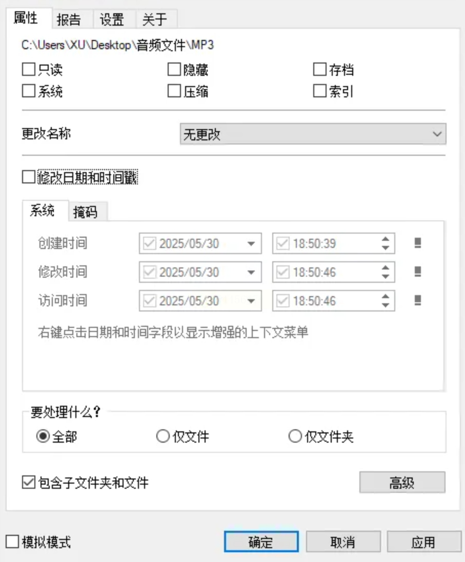 在你安装好 Attribute Changer 之后,在桌面或程序列表里找到它的图标,双击运行它。它的界面可能看起来选项多一点,但别慌,我们一步步来。