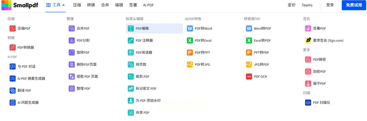 1. 访问Smallpdf官网,在首页选择"元数据编辑"功能;