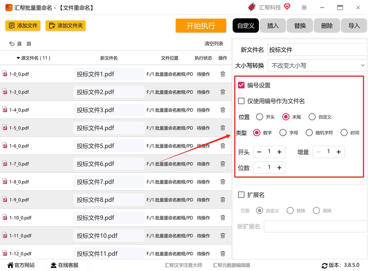 - 编号位置:放在前缀后还是文件扩展名前(通常建议放在中间,如“项目A报告_001”)