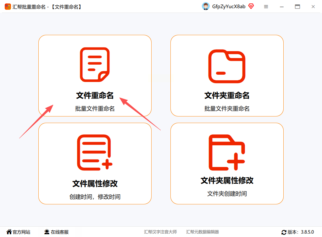 确保电脑中已安装汇帮批量重命名软件,双击图标打开程序。