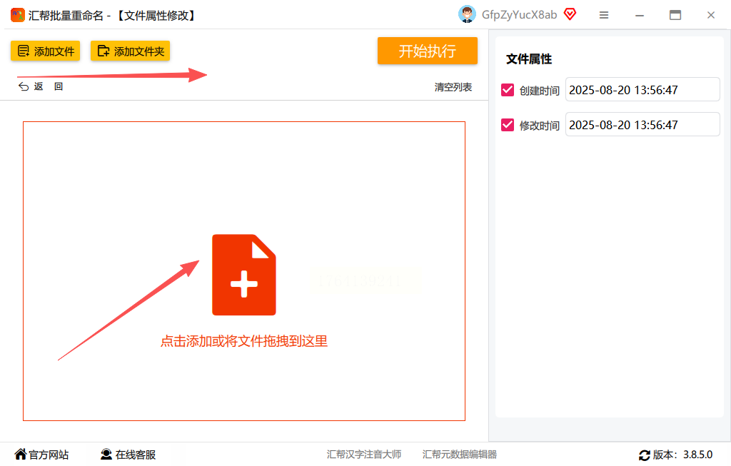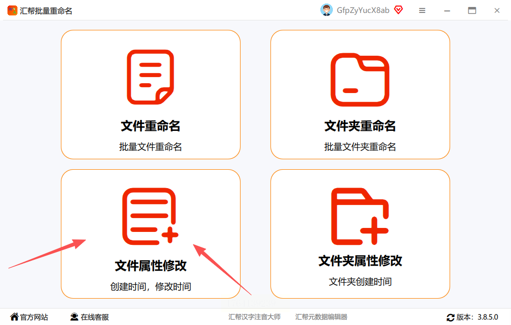 打开软件后,在主界面点击“文件属性修改”选项,进入时间属性编辑功能区。