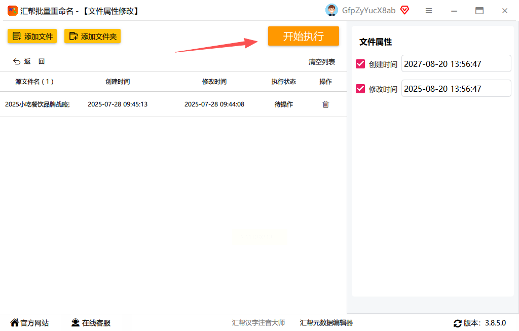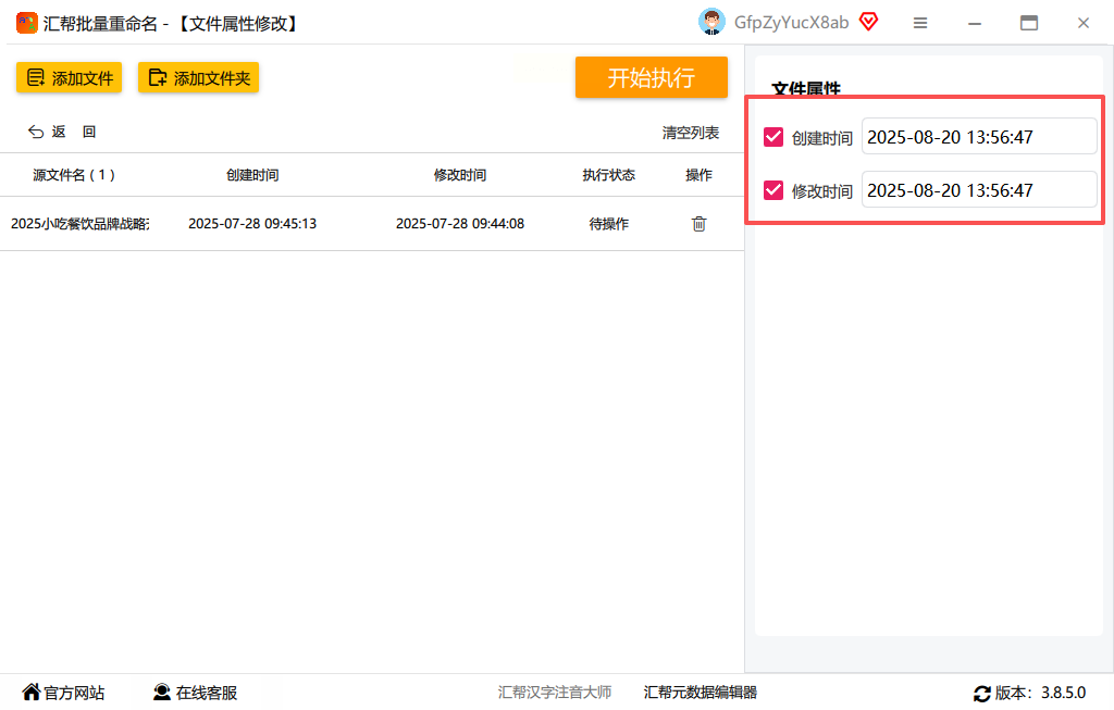 确认时间设置无误后,点击“开始执行”按钮。软件会自动完成修改,过程中无需保持窗口打开,完成后会弹出提示。